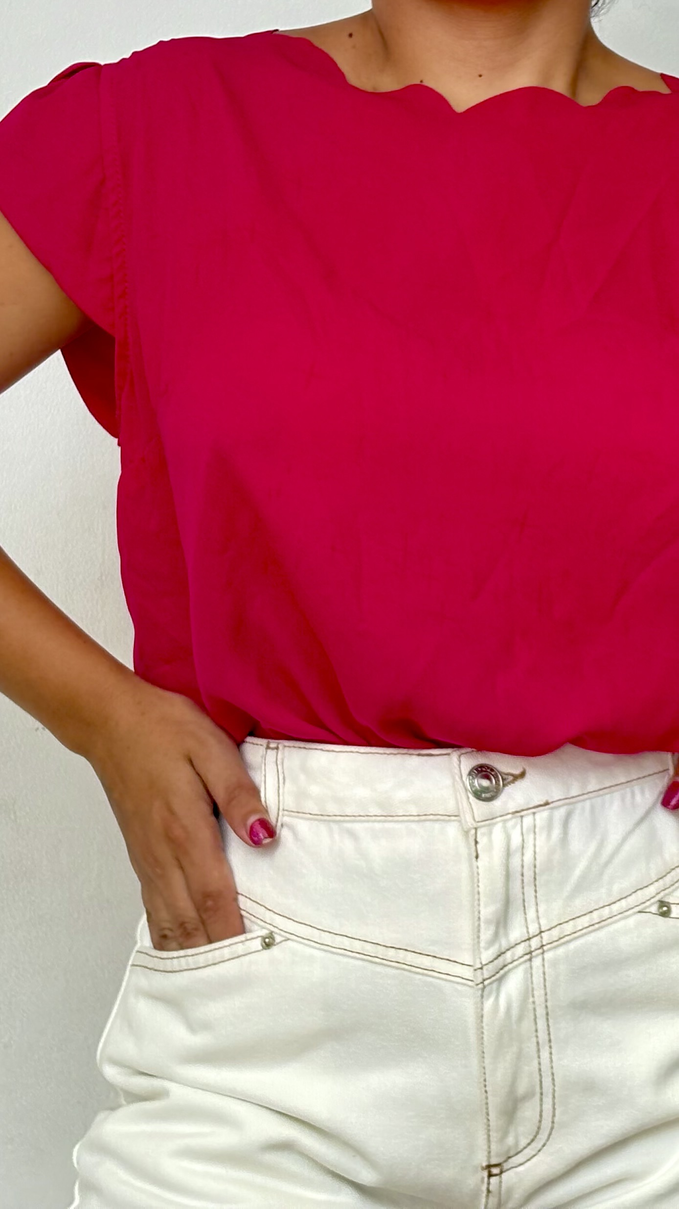 Destaca con esta sofisticada blusa en color fucsia, diseñada para realzar cualquier look. Su detalle en las mangas añade un toque de estilo y modernidad, ideal para ocasiones especiales o para elevar un outfit casual. Confeccionada en tela ligera y fluida, brinda comodidad sin perder elegancia. Perfecta para combinar con faldas, pantalones de vestir o jeans.