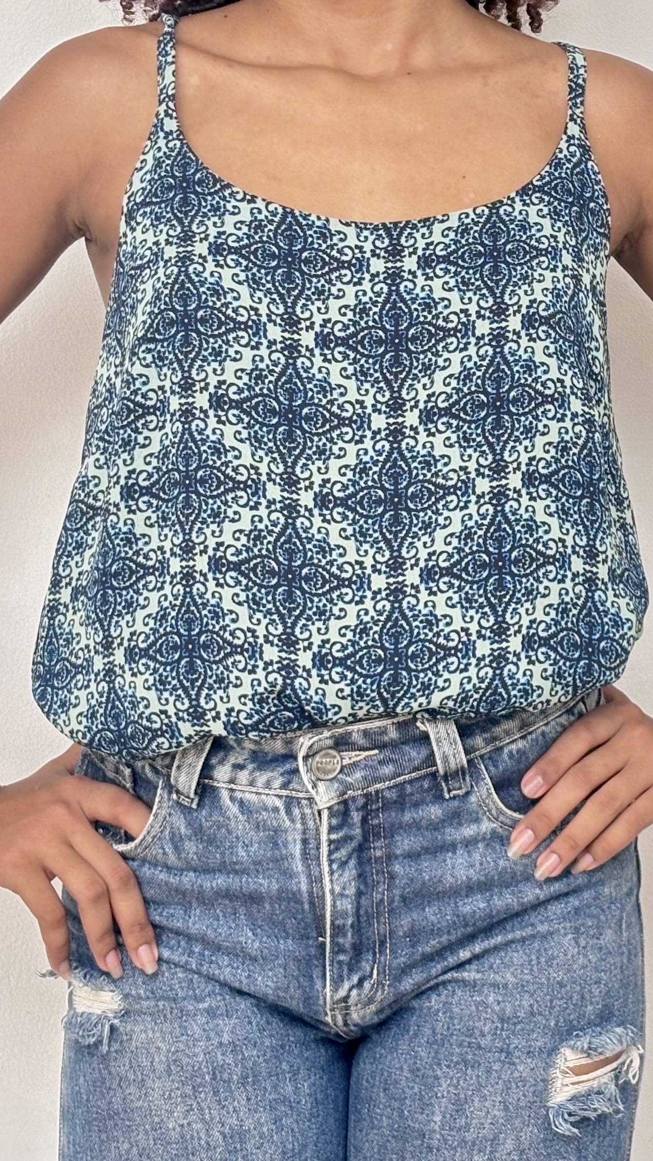 Fresca y versátil, esta blusa larga de tiras es perfecta para un look casual y cómodo. Su diseño estampado le aporta un toque vibrante y moderno, ideal para combinar con jeans, shorts o faldas. Confeccionada en una tela ligera y fluida, garantiza frescura y comodidad durante todo el día.