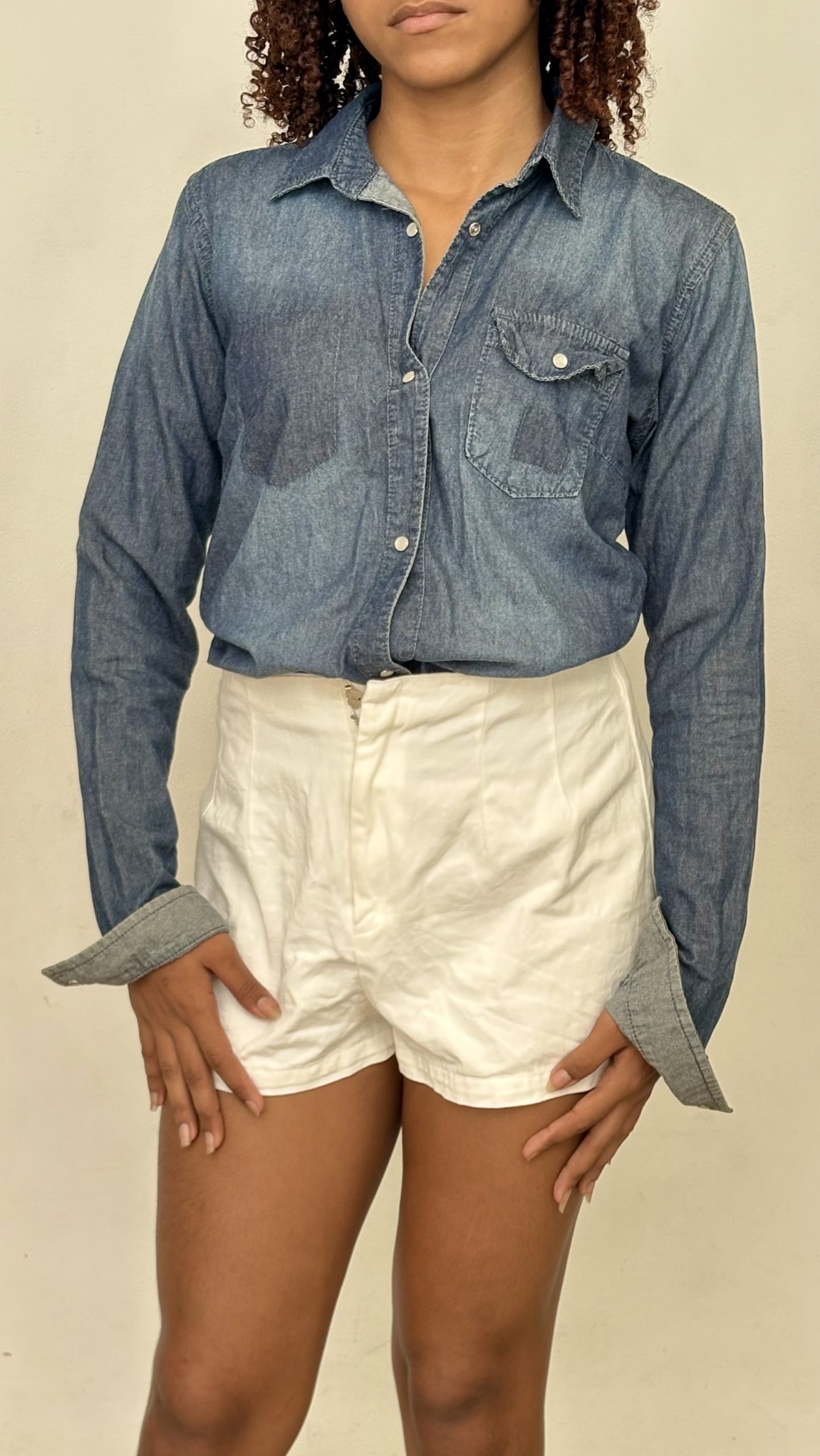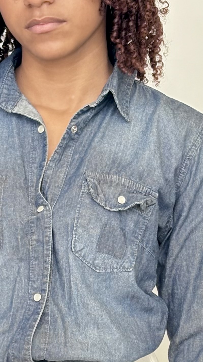 Una prenda infaltable en cualquier armario. Esta camisa de jean oscuro de manga larga combina estilo y funcionalidad a la perfección. Su diseño clásico con botones la hace fácil de llevar abierta sobre una camiseta o cerrada para un look más pulido. Hecha con una tela resistente y cómoda, es ideal para cualquier temporada. Úsala con jeans para un total denim look o combínala con faldas y pantalones para un outfit moderno y relajado.